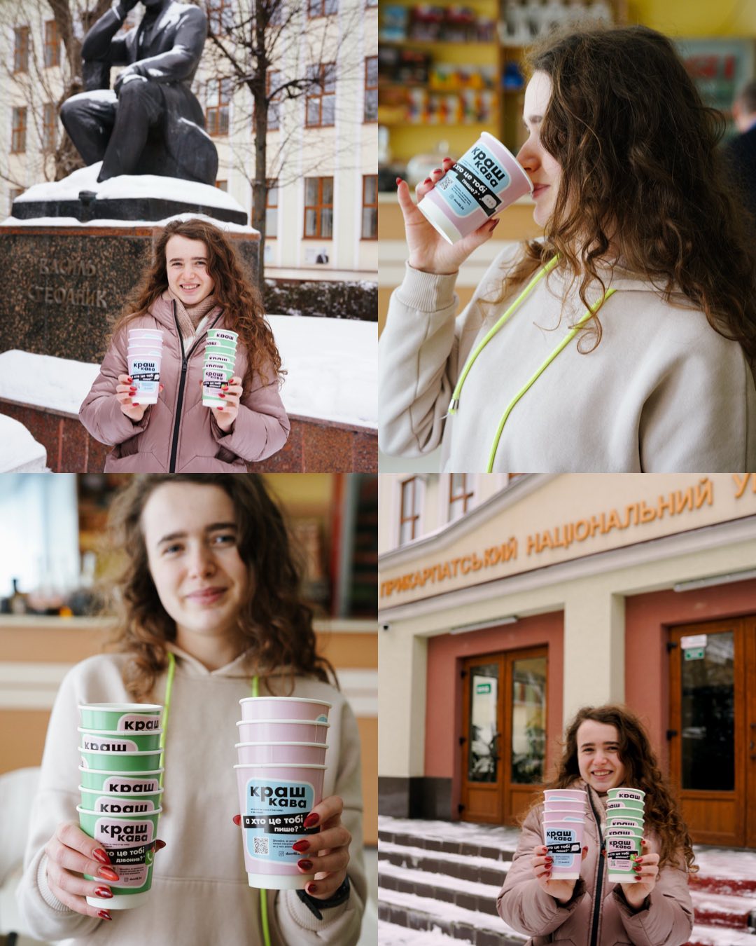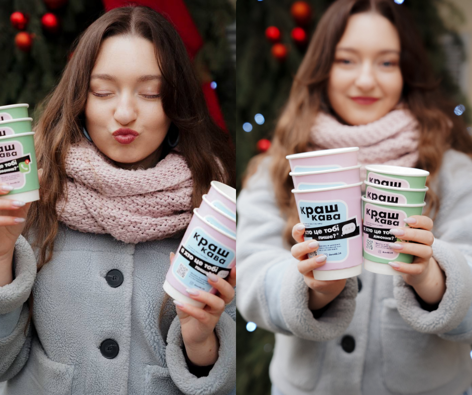 До дня святого Валентина, ми повторили нашу найкращу комунікаційну кампанію 2021 року, адресовану дівчатам та жінкам, щоб навчити їх розпізнавати перші ознаки аб’юзу. Адже потрапити в токсичні стосунки значно легше, ніж потім вибратись з них. Для цього ми обрали простий формат — меседжі на паперових стаканчиках для кави. Бо саме за кавою, у розмовах із подругами, часто з’являються ті самі запитання, які ми не завжди ставимо вголос.
