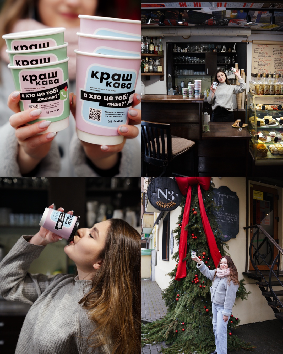QR-код на стаканчику веде на наш інстаграм www.instagram.com/dom48.24 (хто ще не підписався, запрошуємо), де ми розповідаємо про ключові ознаки аб’юзу та як бути, якщо виявили деякі проблеми в своїх стосунках. Сама кампанія стартувала 13 лютого і приємно, що її вже підтримали багато кав’ярень.